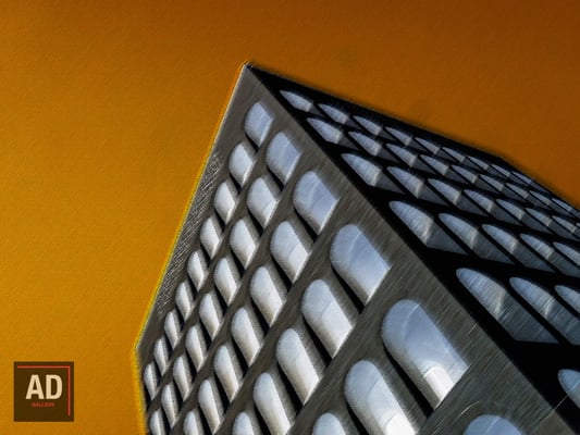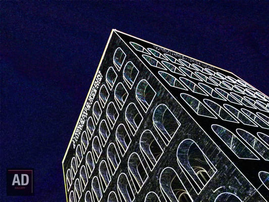 Il supporto su cui sono stampate alcune delle immagini della collezione, è un alluminio anodizzato, elaborato ulteriormente per dare più enfasi alla “metalizzazione” del processo di stampa e per rendere ancora più “aliena” la “dimensione spazio-temporale” in cui le strutture architettoniche sono contenute.