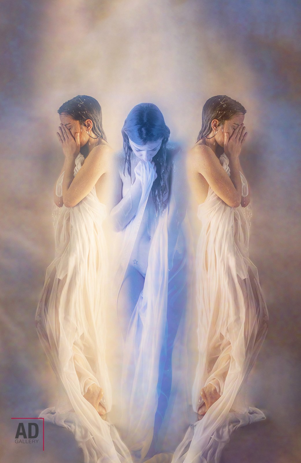 La tecnica della doppia esposizione, impiegata con maestria, diventa lo strumento chiave per tessere un dialogo visivo tra il corporeo e l'etereo. I corpi femminili, ritratti in pose introspettive e vulnerabili, si fondono con elementi astratti e nebulosi, creando composizioni stratificate che rispecchiano la complessità dell'esperienza interiore. Questa fusione visiva tra il tangibile e l'intangibile diventa metafora della lotta interna tra le costrizioni fisiche dell'isolamento e l'espansione dello spirito in cerca di libertà.