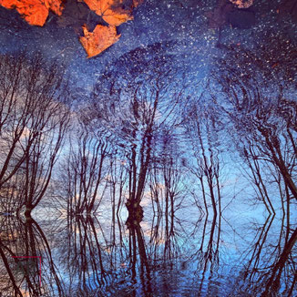 Caratteristiche: Dominanti blu-azzurre con riflessi di foglie autunnali. Forte impatto visivo urbano-naturale.